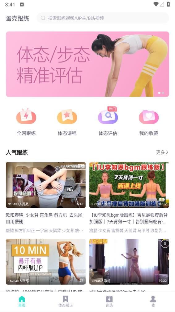 2、您还可以直接从蛋壳跟练跳转至B站,丰富的运动视频应接不暇。如果您有慢跑等其他运动,也可轻松手动记录。