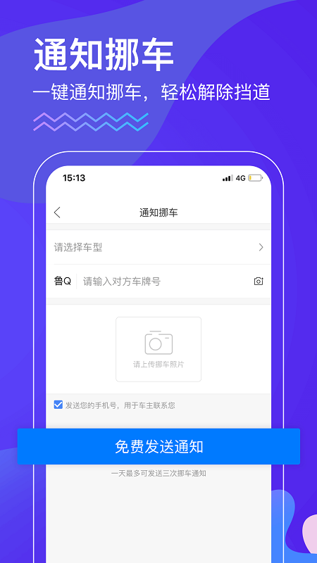 若车辆被挡道,您可一键发送信息通知车主,挪车神器,贴心而强大。