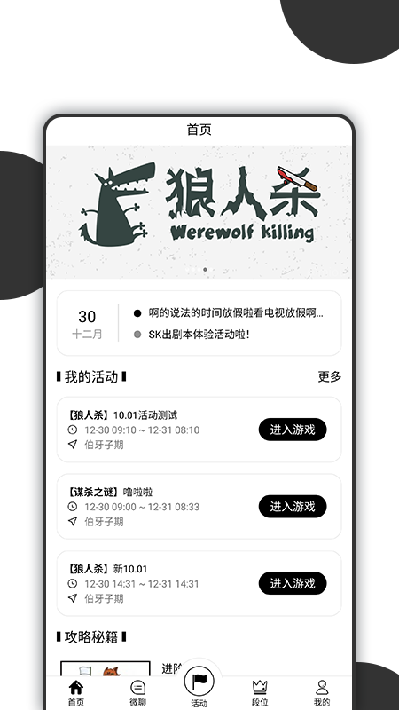 1、“首页”便捷进入游戏界面,随时查看我参与的活动;