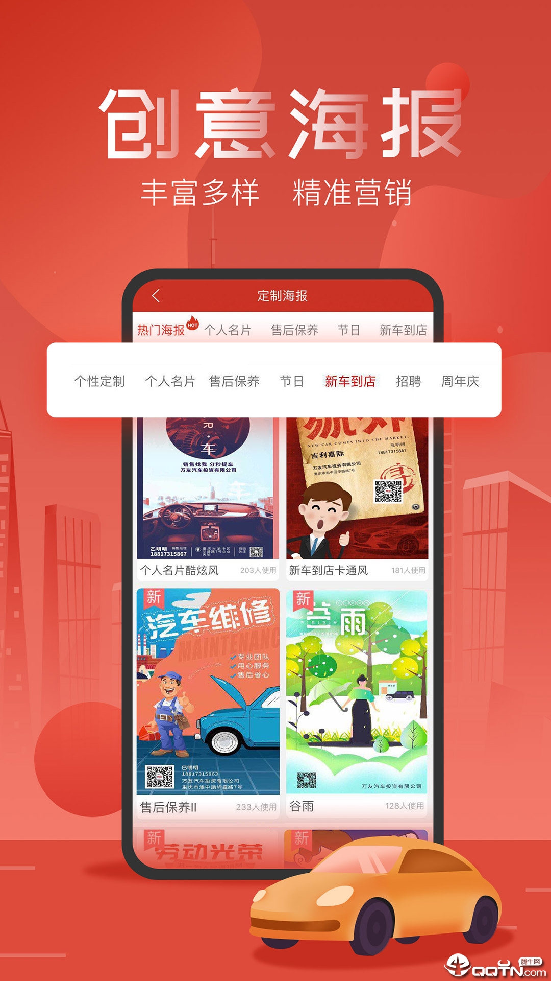 - 营销素材库新增预防药驾、补漆、漆面保养等海报素材,快来定制您的专属海报。