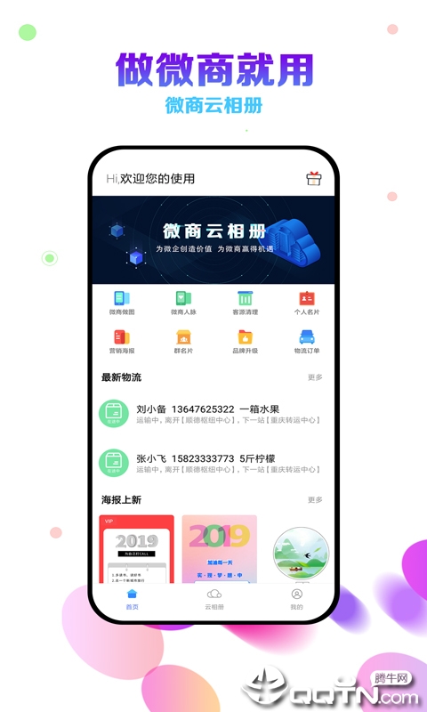 微商云相册是专为微商人脉和微商而打造的工具。您可以在这里轻松进行微商截图、云端共享相册、素材一键传播、海报制作、名片推广、物流订单管理等多项操作。