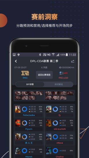 这款软件是一款人工智能实时数据分析平台,专为电竞比赛提供全面的预测与分析,为玩家带来一站式的观赛体验。