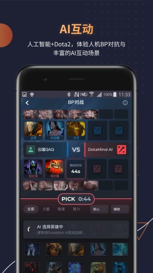 + AI互动:人工智能+Dota2,体验人机BP对抗和丰富的AI互动场景。