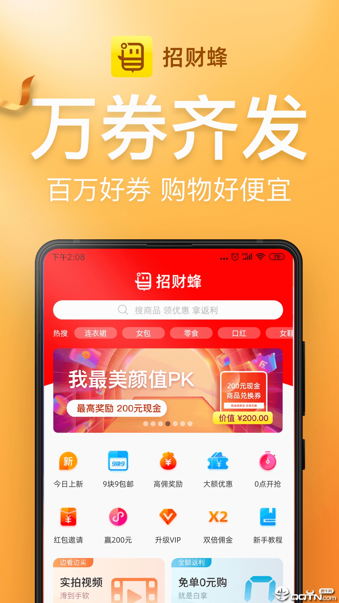 专为热爱购物的朋友量身打造,软件内涵丰富的,助力用户省钱购物。软件不仅能够分享获利,更设有独家招财蜂导购商城,商品琳琅满目,种类繁多,价格实惠,且提供优惠券、拼团等多种促销形式,为买家带来最大优惠。