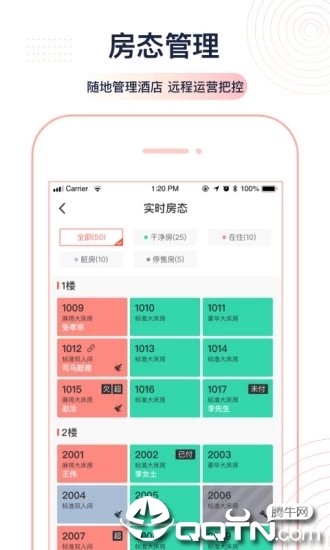 1. 酒店经营数据纵览:通过面板展示主要经营指标的动态数据