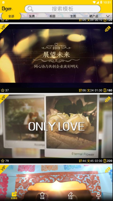 Bger是专业的影视后期,涵盖上千个精美视频模板:每一帧画面、每一段文字皆可随心所欲地调整,无需专业技能与繁琐操作,尽情施展您的创意,打造属于您的独特视频!让您亲自执导,制作出电影级宣传视频,点燃、朋友圈、群的热潮!