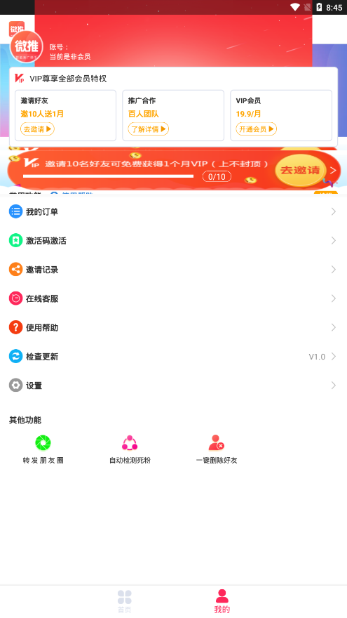 具备清理僵尸粉、一键群发、自动转发朋友圈等强大功能。