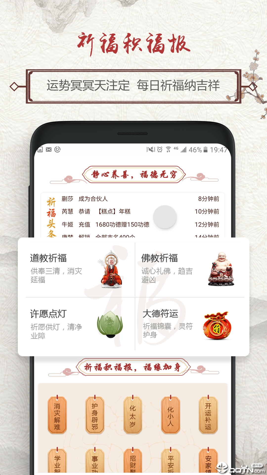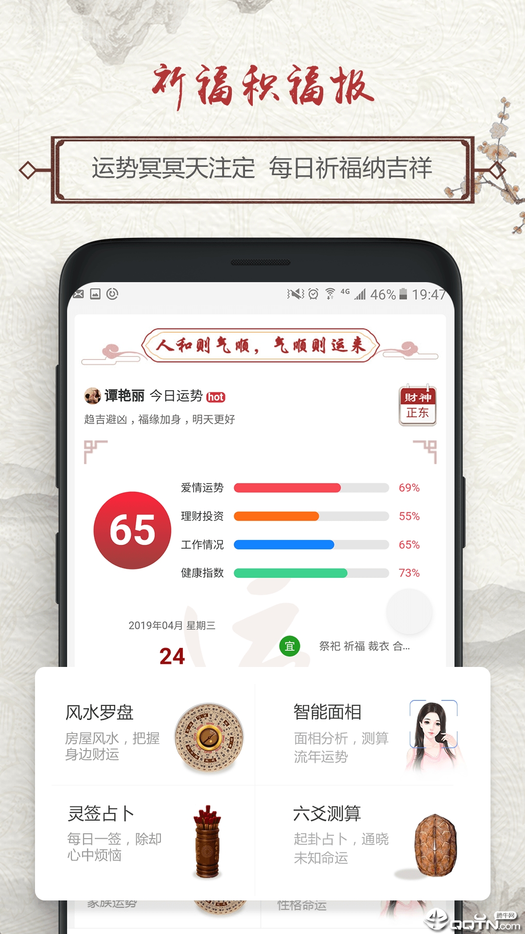 祈福,承载着中国传统八字风水祈福的精髓。这款软件传承了中华传统文化,以现代通俗易懂的方式展现,助您洞悉命运,祈愿平安。风水祈福app,您值得拥有!