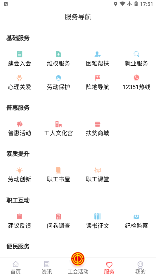整合现有业务形成系统的服务链,构建工会职工统一服务系统,借助信息化技术手段,进一步丰富职工文化活动,增强职工交流互动、满足职工诉求表达。