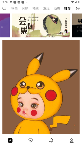 1、首先打开Artand软件,在首页中浏览推荐作品,点击右上角的【加号图标】;