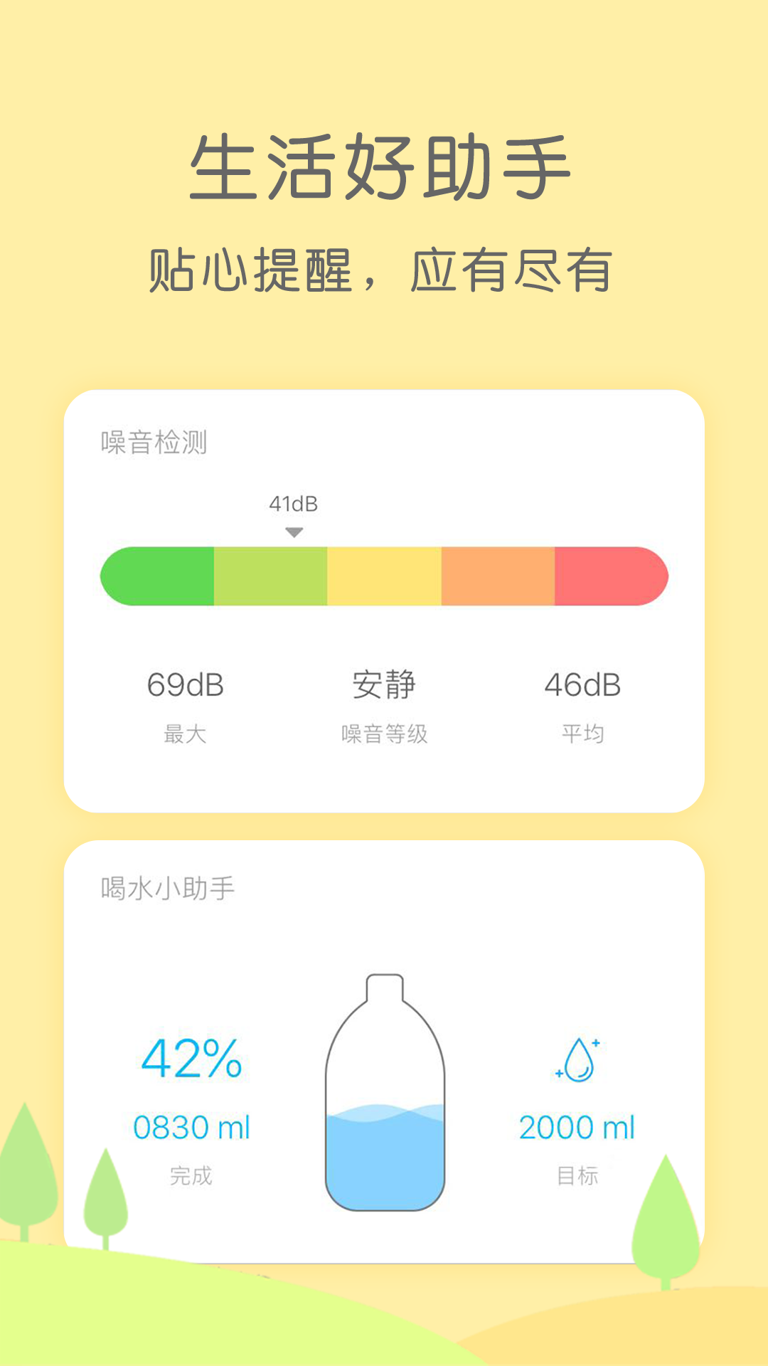 多种工具:噪音检测、喝水小助手、番茄时间、倒数提醒;