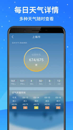 天气预报大师密切关注您所在地的空气质量,预报未来5天的各类空气质量,并提供全国空气质量排名;