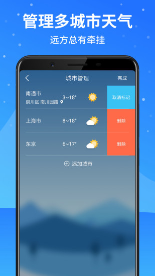 天气预报大师操作简便,打开即可自动更新天气数据;热门城市可随意添加、管理或删除;