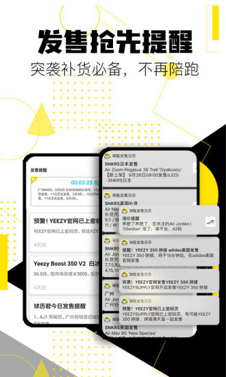 发售提醒 不同渠道的发售信息,第一时间提醒您,让您不错过每一双心仪的球鞋。