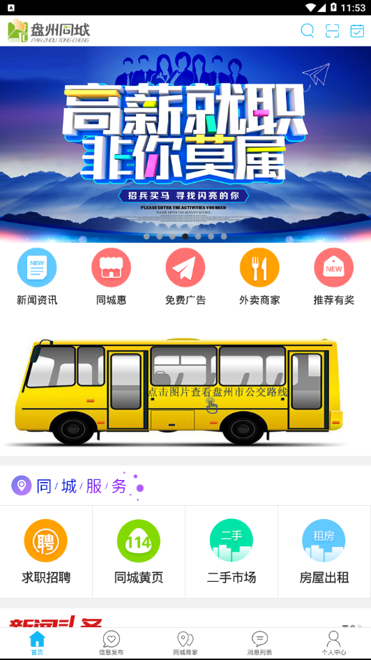 求职招聘、同城首页、二手市场、房屋出租