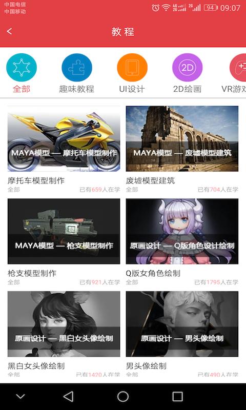 平台所涵盖的视频教学内容广泛,包括:UI设计、Web前端、游戏模型、游戏、游戏、游戏开发、原画设计、插画设计、设计、影视模型、影视动画、影视后期特效及传统基础美术教育。