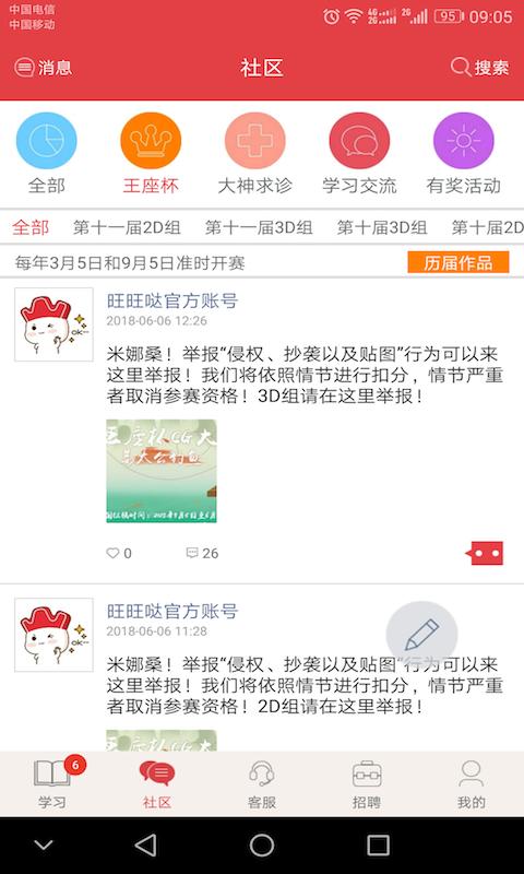 CG技术问答、作品点评请求、行业话题讨论的创建,以及提交作品源文件以求修改(同时可获得修改过程视频)。