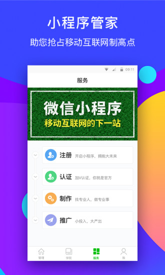 【服务】围绕小程序的开发、制作、运营及,提供全方位的一站式服务。