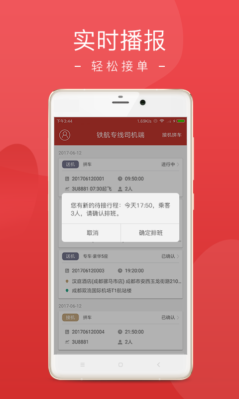 铁航接送机,提供便捷而优质的接送服务。司机端APP是为司机量身定制的一款接送服务应用,司机可在APP中轻松查看待接乘客的,系统将自动定位乘客位置,并规划出最佳导航路线,以便迅速接到乘客,减少等待时间。