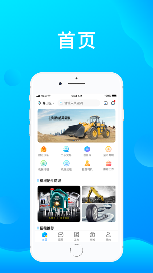 涵盖了附近设备、金币商城、、设备库、机械出租及机械招租等丰富功能,在线寻找机械、工作、师傅,