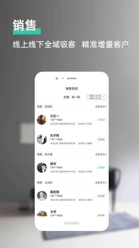 发掘潜在客户、意向客户及进店客户,统计日常与营销数据。