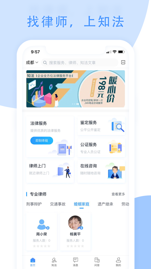 知法(律师咨询)APP,专业律师在线为用户解答疑惑,提供多样化的优质。知法APP,致力于为您带来律师上门、法律学习、法律咨询等多重服务,专业可靠,轻松解决用户的法律问题。