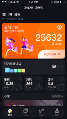 SuperBand蓝牙手环应用程序,专为蓝牙而精心打造的控制软件,用户可随时便捷地查看的数据信息,智能分析并生成清晰的图表,帮助用户一目了然地掌握个人健康状况,尽享便捷生活。
