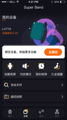 SuperBand是一款基于蓝牙手环开发的应用程序,采用蓝牙4.0进行通信,涵盖了睡眠统计、血压测量、遥控拍照(通过手环进行拍摄)、闹钟设置、久坐提醒(可设定提醒时间以防用户久坐)、抬手亮屏、计步、消息推送、勿扰模式、睡眠监测及寻找手环等多种实用功能。用户能够通过此应用直观地了解自身的身体状况与运动状态,是一款轻量级的助手型工具应用。
