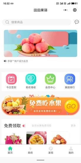 田田果驿app致力于为消费者提供优质安全的,更专注于健康新鲜的水果,让每位用户尽享安心的生态农产品。