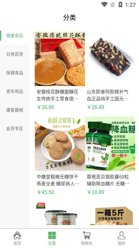 特色服务线上端提供:健康食品、日用百货、老年用品及康复器械。