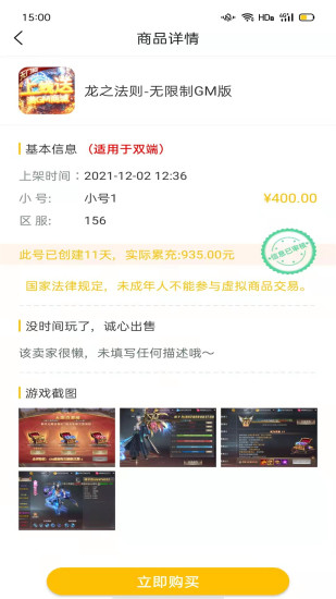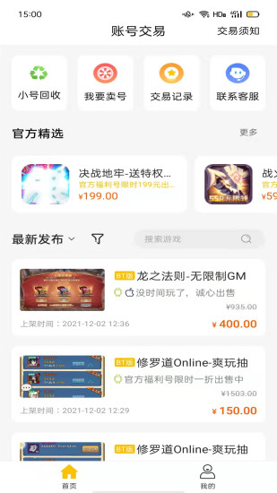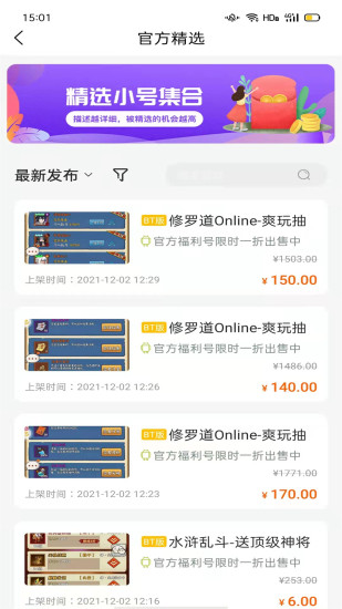 4、浏览游戏账号、装备的交易信息,快速发现所需游戏账号、装备