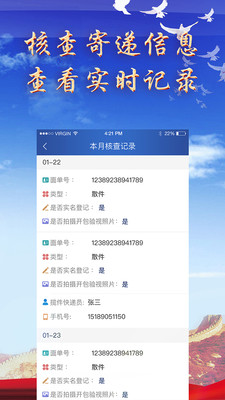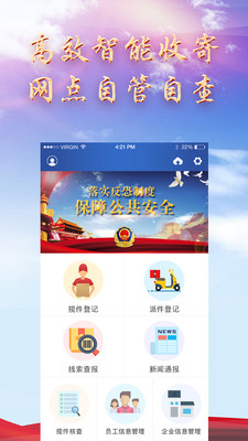 慧寄递APP,致力于高效智能的收寄体验,令网店管理自如;揽件信息登记,快速而准确的识读;如遇可疑快递,及时采集证据并上报;移动管理员工,随时更新信息网络;核查寄送信息,随时查看实时。