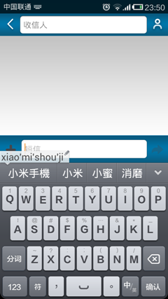 当输入“小米手机”这四个字后,亦支持词语联想功能。