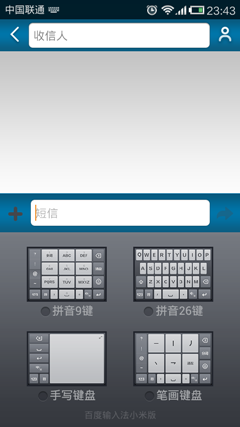 百度输入法的小米定制版同样提供了四种输入界面,分别是