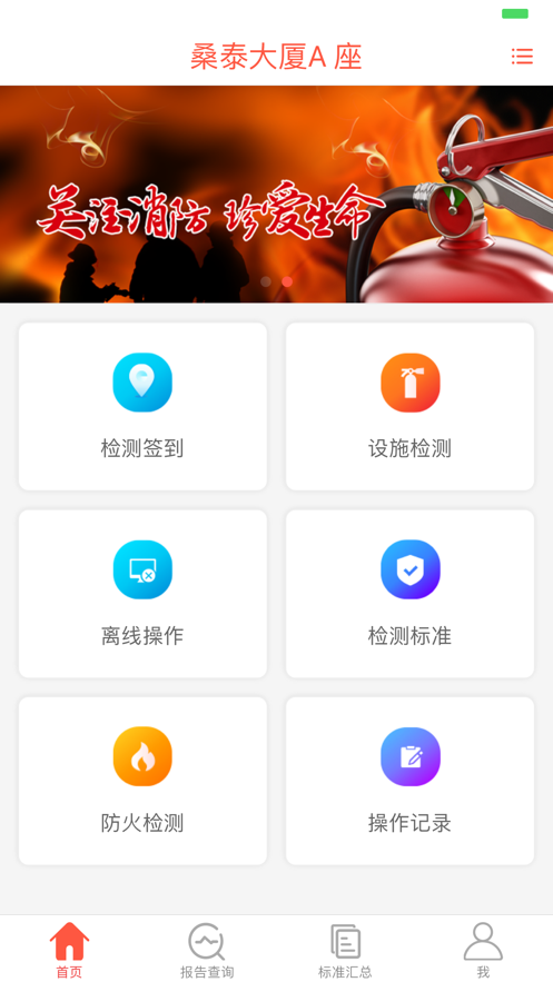 2. 消防检测:包括检测项目管理、签到管理、巡检、企业信息管理、人员管理及消防知识的学习。