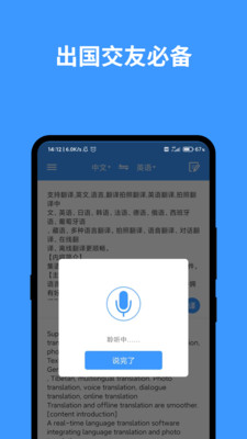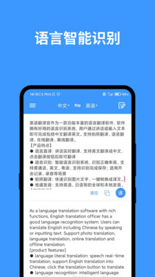 ● 语言实时翻译:语音翻译即时生效,支持英文翻译成中文,轻松点击翻译按钮完成转换。