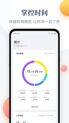 手机每日或近7日的使用时间和平均使用时长,让您轻松了解每日的手机使用情况。