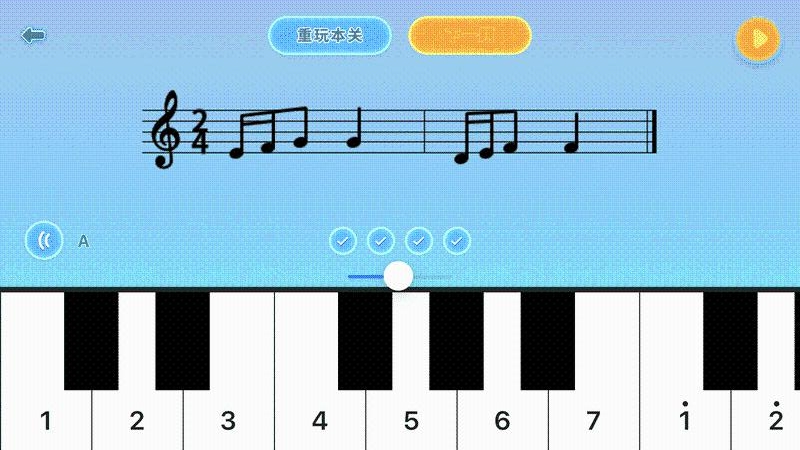 通过标准音单位拍提示,训练音高、旋律、等技能。
