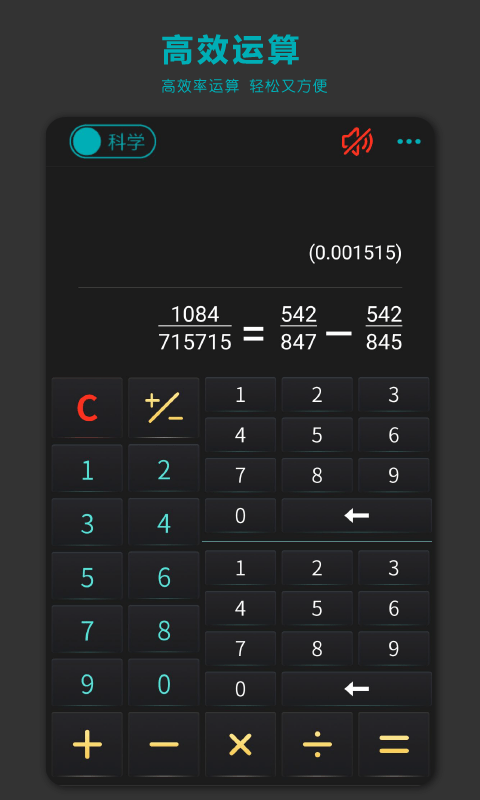 分数高级计算器是一款极为实用的计算软件,界面设计简洁明了,操作十分。用户可自由切换科学计算器与普通计算器,还具备的独特功能,让计算变得轻松愉快!有需要的朋友们,诚邀您前来下载体验!