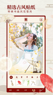 拥有超过200种古风滤镜,轻松拍摄出如梦如幻的穿越之感。