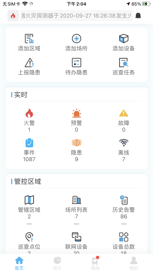 火知眼是由中消云研究院开发的一款专注于高危场所消防设施监控的应用软件,能够辅助业主处理警情,并实现智能网关、烟雾探测器、用电安全设备、灭火器等设备的实时监控和智能化管理。