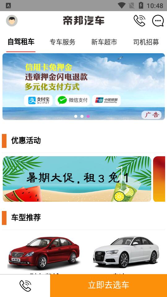 帝邦汽车租赁平台,专业平台。软件提供商旅租车、短租自驾、帝邦专车、长租服务、企业租车、顺风车站、二手车等线上租赁,多样车型,无限畅行,为您打造至臻便捷的租车体验。