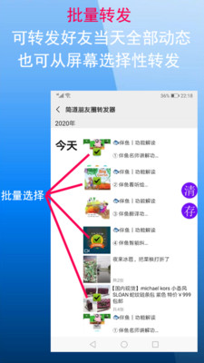在手机屏幕上批量选择要转发的动态,选定后即可一键转发