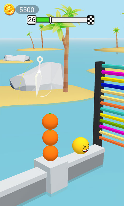 轻触屏幕,刀具便会向上跃起,在下落的过程中可流畅切割各种道具;