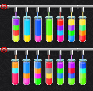 5、朋友们,是时候开始这场精彩的游戏,整理五彩斑斓的水拼图了。试管中充满了各式各样的颜色。