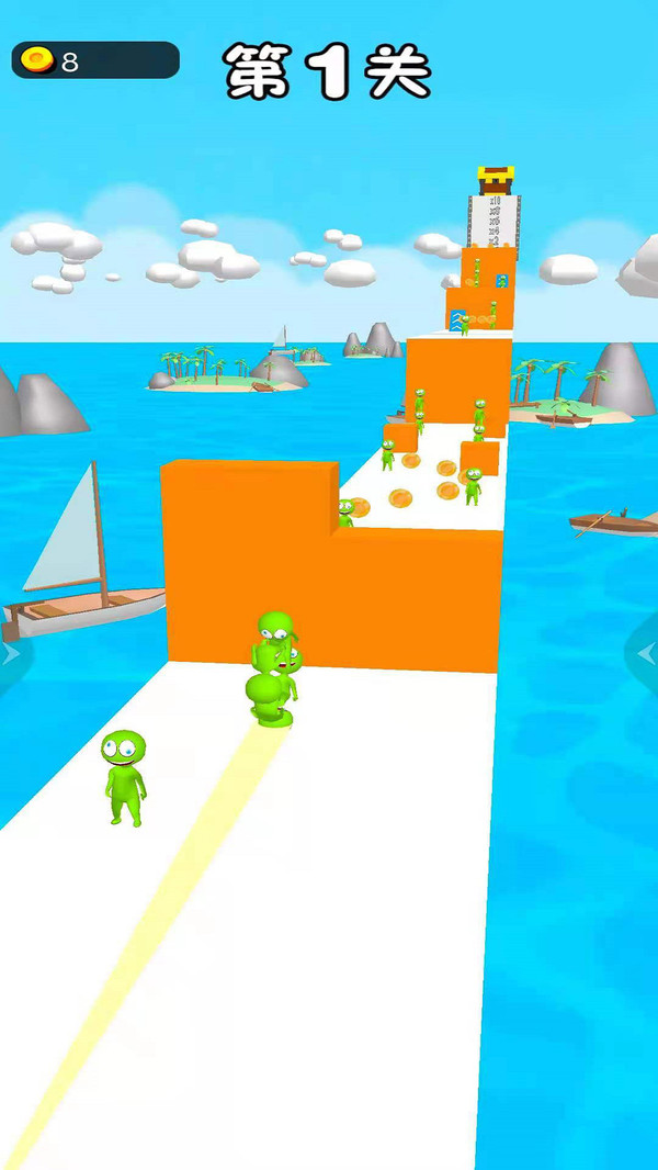 《抱团向前冲》是一款堆叠类跑酷游戏。在游戏中,玩家通过左右移动来掌控角色的行进方向。在闯关过程中,收集更多的橡皮人以堆叠高度,跨越各式障碍墙,最终抵达终点即可获得胜利。
