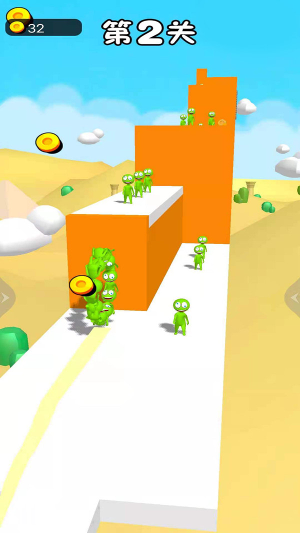 《抱团向前冲》是一款在上备受欢迎的趣味小游戏,玩家需要收集小人,壮大自己的队伍。在前行的旅途中,需小心那些潜在减少小人数量的各种障碍与机关,只需简单地控制角色左右移动,便可轻松完成赛道的跑酷挑战。