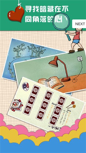 心探是一款极具趣味性的休闲,其卡通风格的游戏画面令人赏心悦目。在每一关中,你需要根据线索去寻找那颗隐藏的心,难度会逐渐提升,挑战性十足。