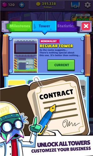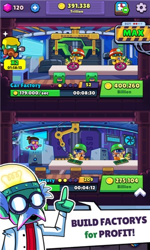 3、不断升级各种建筑,解锁更多楼层,获取丰厚财富,成为最强大的科学家。