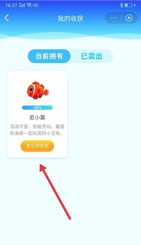 6、在鱼仓中点击“卖出得奖励”。
